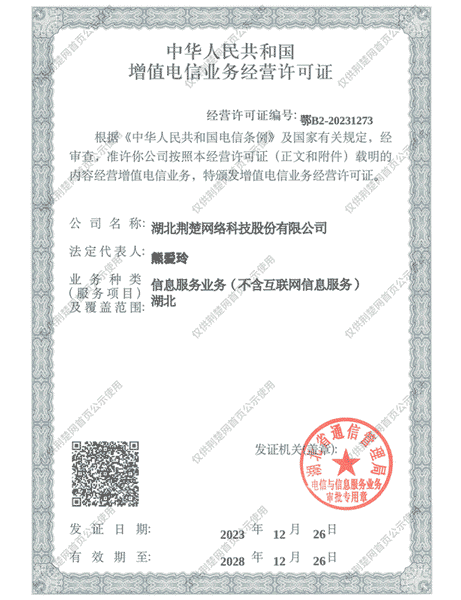 增值電信業(yè)務(wù)經(jīng)營(yíng)許可證 鄂B2-20231273 -