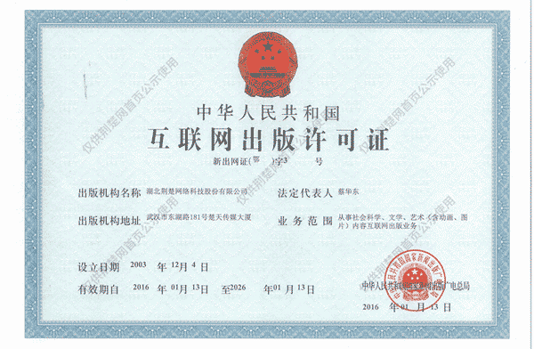 互聯(lián)網(wǎng)出版許可證 (鄂)字3號(hào) -