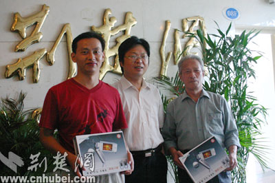 兩位獲2800元手機(jī)大獎(jiǎng)的幸運(yùn)讀者與荊楚網(wǎng)副總編輯合影