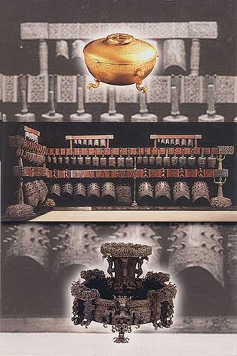 銅編鐘:樂(lè)器(中,鐘架高265~273厘米)