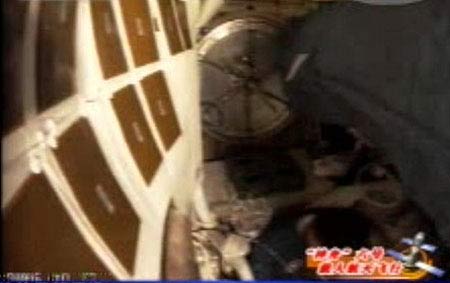 人民網(wǎng) 北京航天飛行控制中心10月13日訊 前方報道組報道:今天下午,神六首次傳回軌道艙畫面。