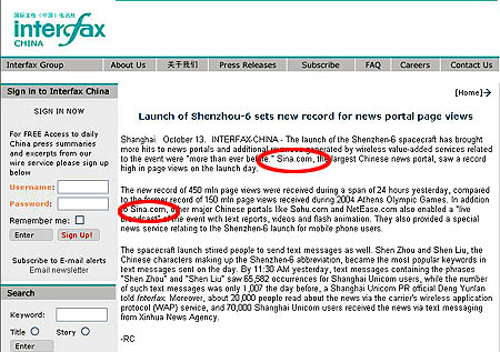 10月14日,俄羅斯國(guó)際文傳社報(bào)道神六使中國(guó)新聞門戶網(wǎng)頁面流量創(chuàng)新高。