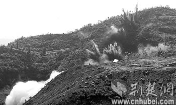 昨日上午10時(shí)30分,在一聲巨響中,宜昌市點(diǎn)軍區(qū)橋邊鎮(zhèn)黃家棚村的一座山頭劇烈地?fù)u晃了幾下,整座山土石松動(dòng),這是宜萬鐵路完成的一起大型山體爆破施工項(xiàng)目。