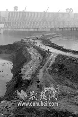 1997年11月大江截流后,三峽工程二期上、下游橫向圍堰在左岸動(dòng)工,此圍堰將長江主河床截?cái),與一期形成的混凝土縱向圍堰共同形成二期基坑。在基坑內(nèi)建起了泄洪壩段、左岸廠房壩段及電站廠房等主體建筑物。2002年5月和7月,先后拆除了二期上、下土石橫向圍堰。