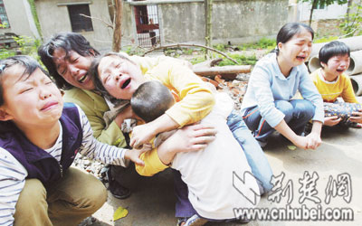 昨日上午,余行洲的妻子和5個兒女在其摔死的地方大聲慟哭,痛不欲生。當地居民介紹:余系黃陂李集人,一家人的生活全靠他在外打工維持。