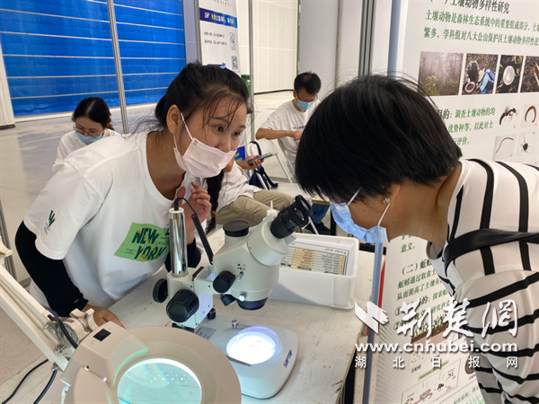 “蚯蚓是人類的好朋友?!眮碜灾锌圃何錆h植物園功能生態(tài)組的林小元正在展臺前指導市民通過顯微鏡觀察土壤和蚯蚓。她邊調(diào)試儀器邊介紹,蚯蚓是土壤動物里最常見類群之一,它們在土壤生態(tài)系統(tǒng)中既是“消費”者,也是“創(chuàng)造”者,它們通過取食、消化、排泄、分泌和挖掘洞穴等活動對土壤產(chǎn)生重要影響,被稱為“土壤工程師”。