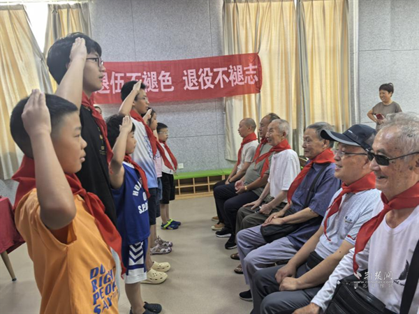 少先隊員為退役老兵們佩戴紅領巾。通訊員供圖