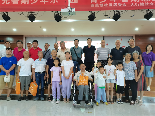 四美塘社區(qū)在楊園街眾成頤家養(yǎng)老服務中心五樓舉辦了一場別開生面的建軍節(jié)活動。楊園教育學院民樂團、管樂團的團長同時也是退伍老兵的楊寶明給現(xiàn)場參與者帶來原創(chuàng)詩歌朗誦表演。退伍軍人為孩子們講解了國防軍事相關知識,并分享了自己的參軍經歷?;佑螒颉皥F結大作戰(zhàn)”環(huán)節(jié)中,孩子們與退役軍人分組合作,共同完成了筷子疊杯子的挑戰(zhàn),在陣陣歡笑中,進一步增進了轄區(qū)退役軍人之間的聯(lián)系,也在孩子們心中播下了愛國擁軍的種子。