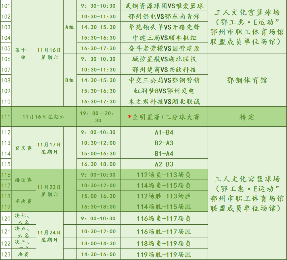 目前,此次比賽賽程已出爐,123場比賽將全程對外公開,感興趣的市民朋友可前往觀戰(zhàn)。