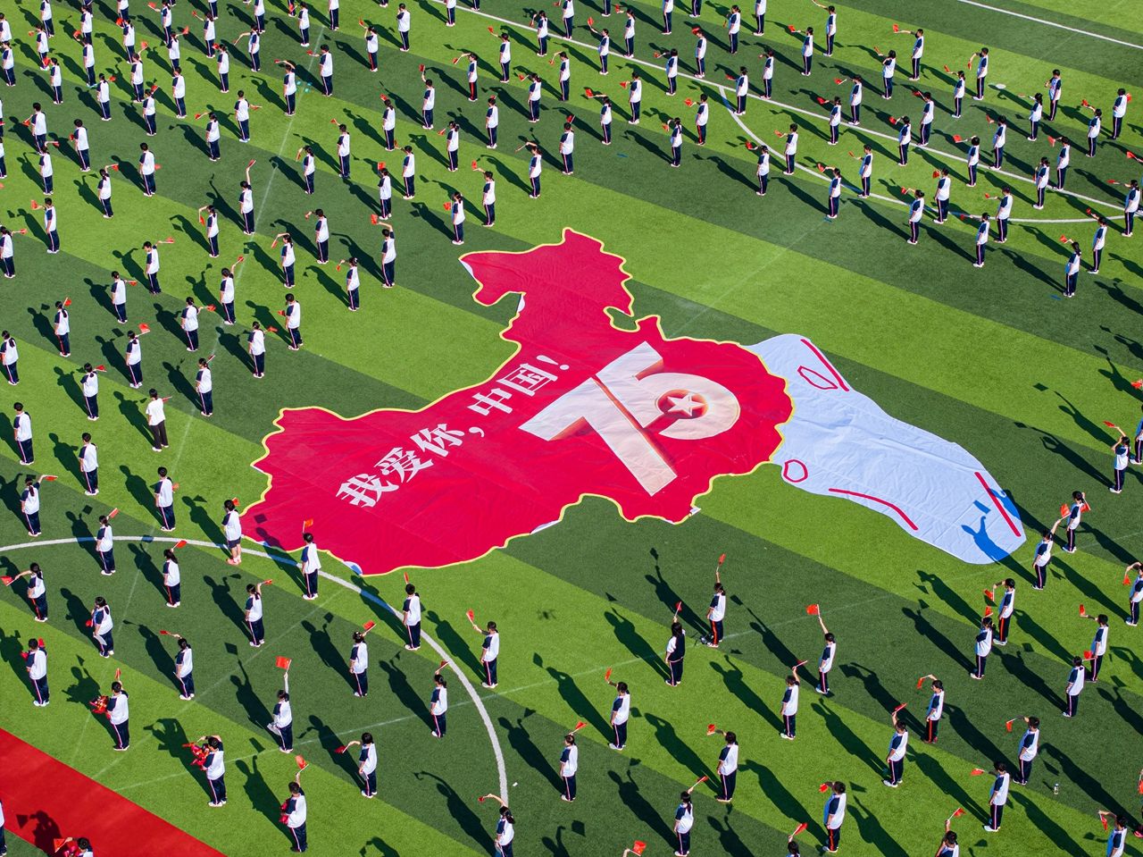 “我愛你,中國”大型噴繪。黃石日報 周巍 攝