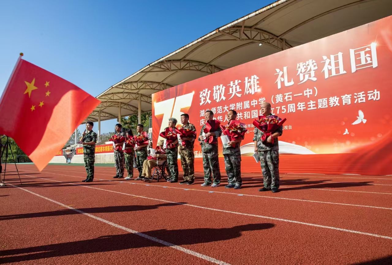 9月29日上午,國慶節(jié)臨近,“致敬英雄 禮贊祖國”——湖北師范大學附屬中學(黃石一中)慶祝中華人民共和國成立75周年活動舉行?;顒油ㄟ^走一次紅地毯、唱一首主題歌、獻一束手捧花、送一本報道集等形式,致敬為共和國無私奉獻的英雄們。