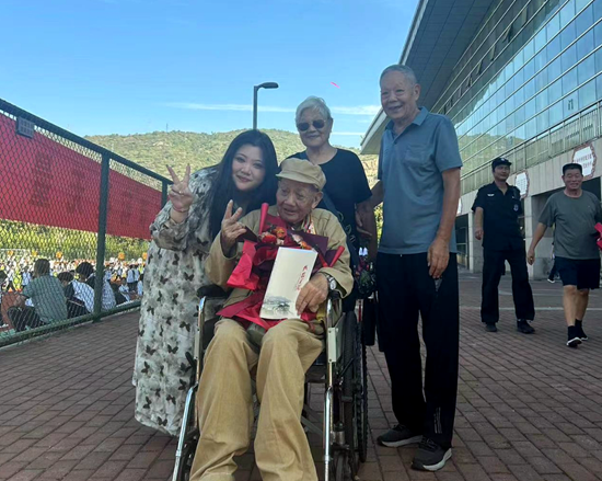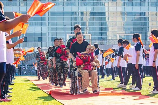 荊楚網(wǎng)(湖北日?qǐng)?bào)網(wǎng))訊(記者呂鑒蕾、通訊員黃旺宣、范晨熠、李?。?月29日,湖北師范大學(xué)附屬中學(xué)(黃石一中)操場(chǎng),當(dāng)98歲的老兵由家人推著輪椅,緩緩走上紅地毯時(shí),現(xiàn)場(chǎng)爆發(fā)出雷鳴般的掌聲。