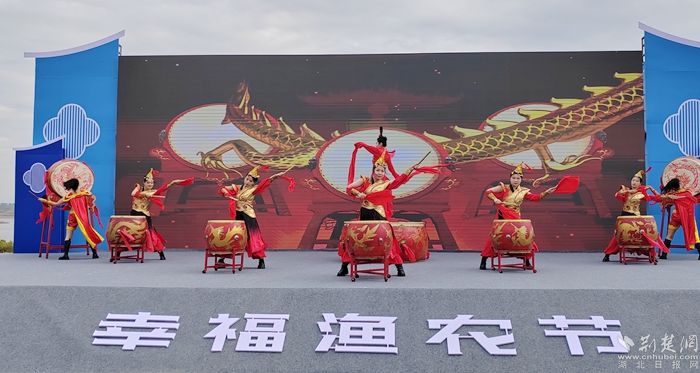 在漁農(nóng)文藝觀賞區(qū),開(kāi)幕儀式上頒發(fā)了陶店鄉(xiāng)農(nóng)業(yè)發(fā)展顧問(wèn)和電商發(fā)展顧問(wèn)的聘書(shū),并舉行了湖北淼燁生態(tài)農(nóng)業(yè)有限公司巴河魚(yú)丸項(xiàng)目的簽約儀式。舞臺(tái)上,身著統(tǒng)一服裝的表演者們揮舞著鼓槌,敲打著鑼鼓,喜慶的氛圍讓現(xiàn)場(chǎng)觀眾心潮澎湃,掌聲雷動(dòng)。