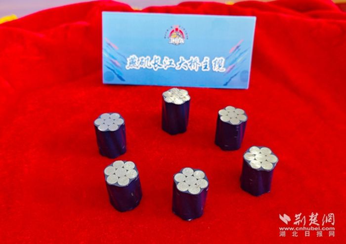 燕磯長(zhǎng)江大橋是世界最大跨徑四主纜懸索橋,也是世界首座不同垂度四主纜雙層鋼桁梁懸索橋。此次大賽獎(jiǎng)杯將運(yùn)用大橋的6根主纜纜芯,它是2100兆帕的高強(qiáng)鋼索,希望參賽隊(duì)員們能夠抗住比賽的高壓,展現(xiàn)出永不放棄的拼搏精神和銳意進(jìn)取的昂揚(yáng)風(fēng)采。