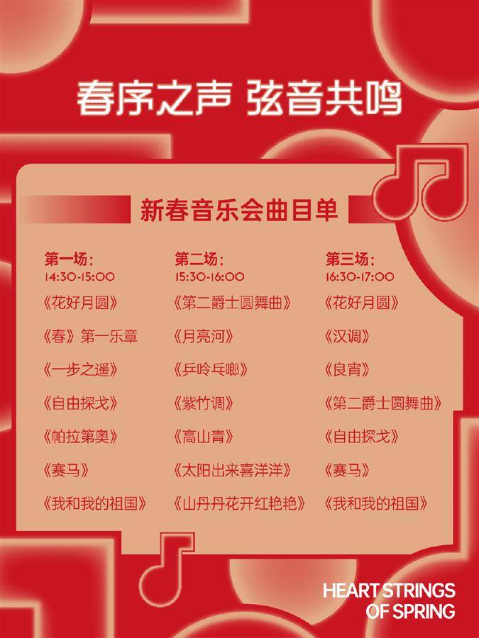 此次專場(chǎng)音樂會(huì)面向武漢市民免費(fèi)開放。包括春日交響樂音樂會(huì)在內(nèi),還有KPOP隨機(jī)舞蹈快閃、浪漫花車等精彩紛呈的活動(dòng)等你加入!