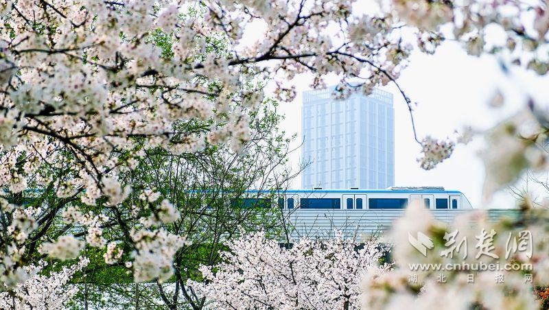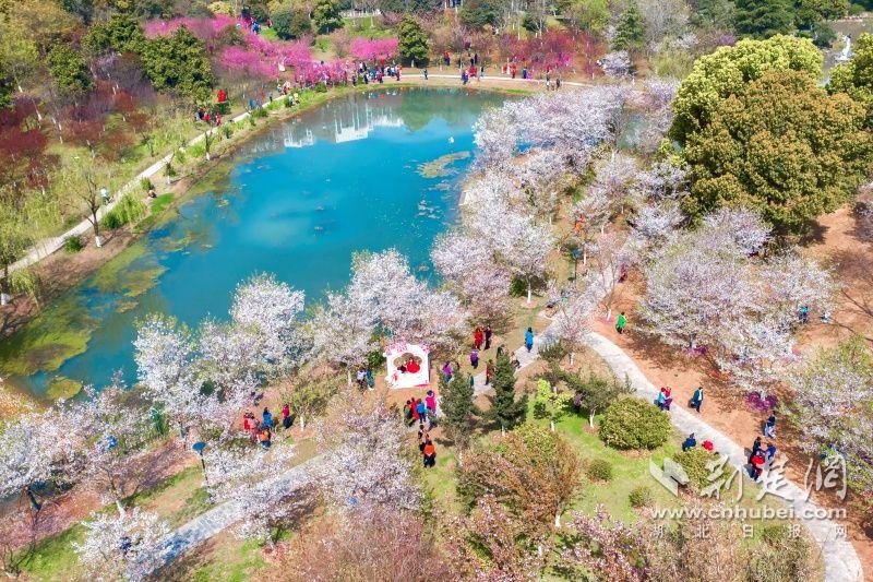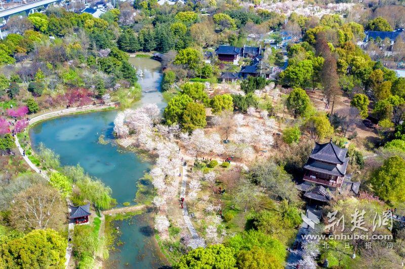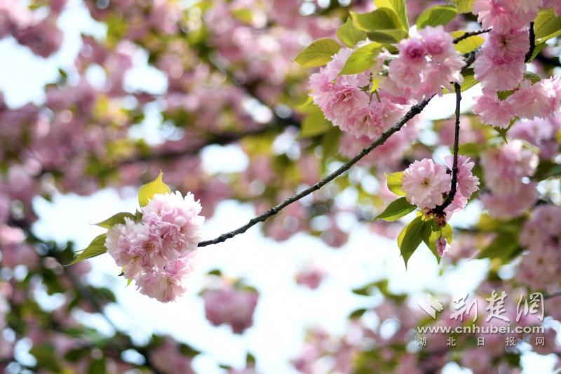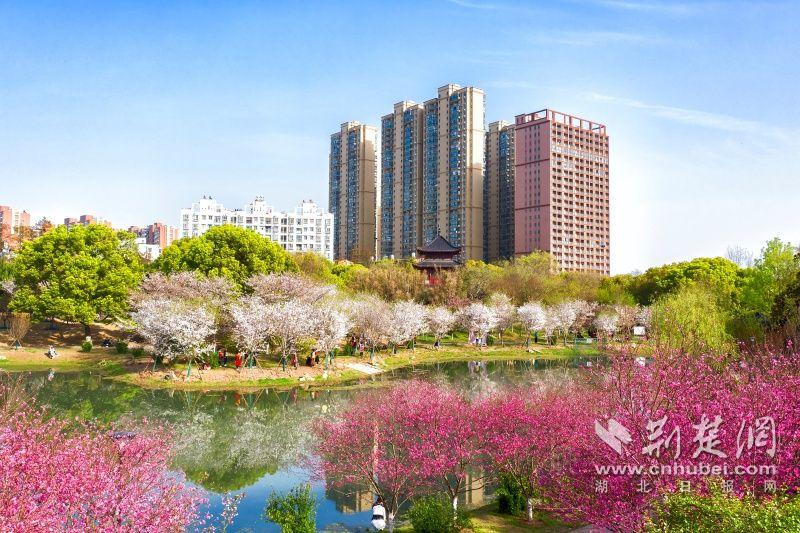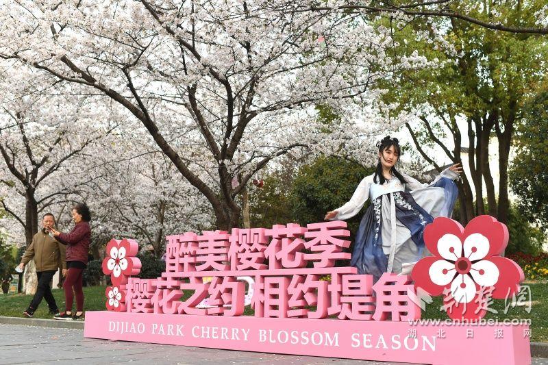 作為武漢“必打卡十大賞櫻點”之一的堤角公園內共有櫻花樹1500余株22種,花期從3月一直到4月。通訊員供圖
