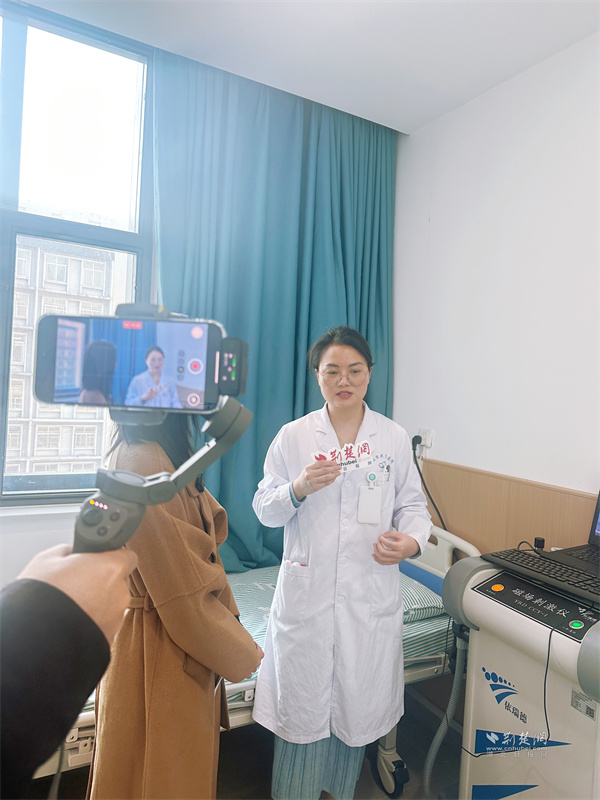 睡眠體檢中心主任陳鈺與荊楚網(wǎng)主播探討睡眠問題。 記者 李燕攝