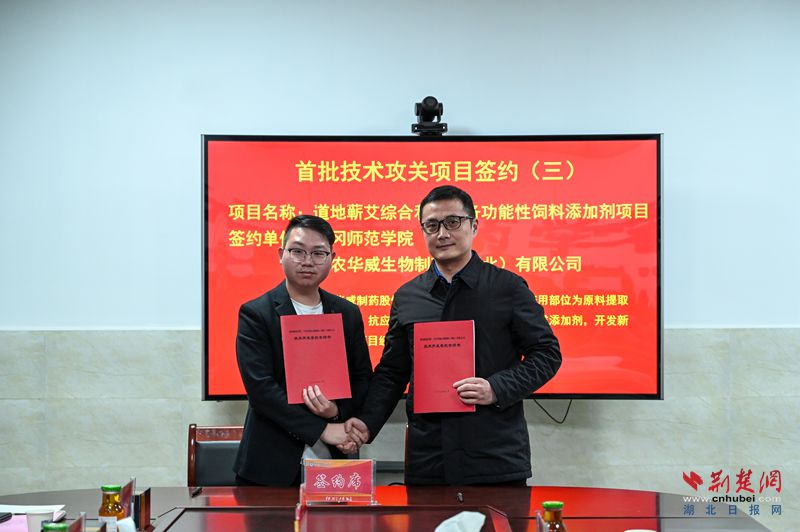 揭牌儀式上,活動(dòng)現(xiàn)場(chǎng),黃岡師范學(xué)院黨委副書(shū)記、校長(zhǎng)漆昌柱和黃岡市科技局黨組書(shū)記姜寬分別為省級(jí)重點(diǎn)實(shí)驗(yàn)室學(xué)術(shù)委員會(huì)專家頒發(fā)聘書(shū)。重點(diǎn)實(shí)驗(yàn)室分別與湖北衛(wèi)爾康現(xiàn)代中藥有限公司、農(nóng)華威生物制藥(湖北)有限公司等6家企業(yè)簽訂產(chǎn)業(yè)關(guān)鍵技術(shù)攻關(guān)項(xiàng)目協(xié)議。項(xiàng)目涵蓋道地藥材多個(gè)研究與開(kāi)發(fā)領(lǐng)域的技術(shù)攻關(guān),總項(xiàng)目經(jīng)費(fèi)達(dá)370萬(wàn)元。