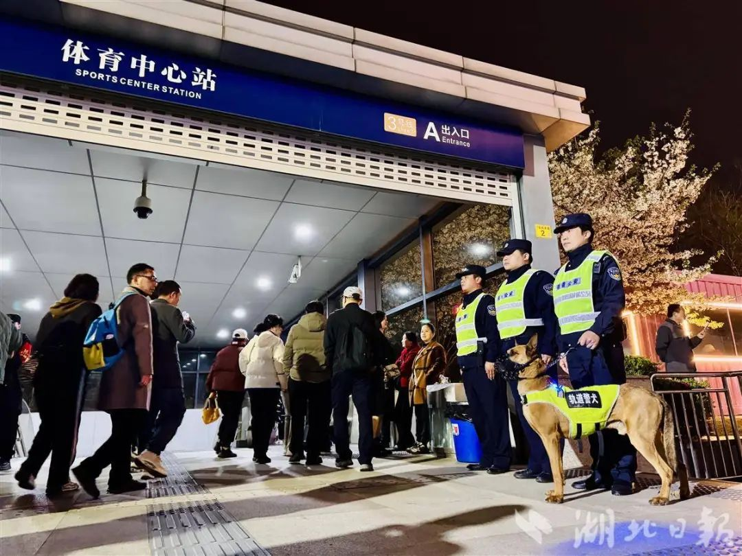 晚上10時許,隨著演唱會結(jié)束,萬人疏散大考正式開始。武漢體育中心出口同時亮起引導(dǎo)牌,執(zhí)勤民警用LED燈牌組成“方向指引”,將人流精準(zhǔn)導(dǎo)向公交、地鐵、出租車等不同區(qū)域。