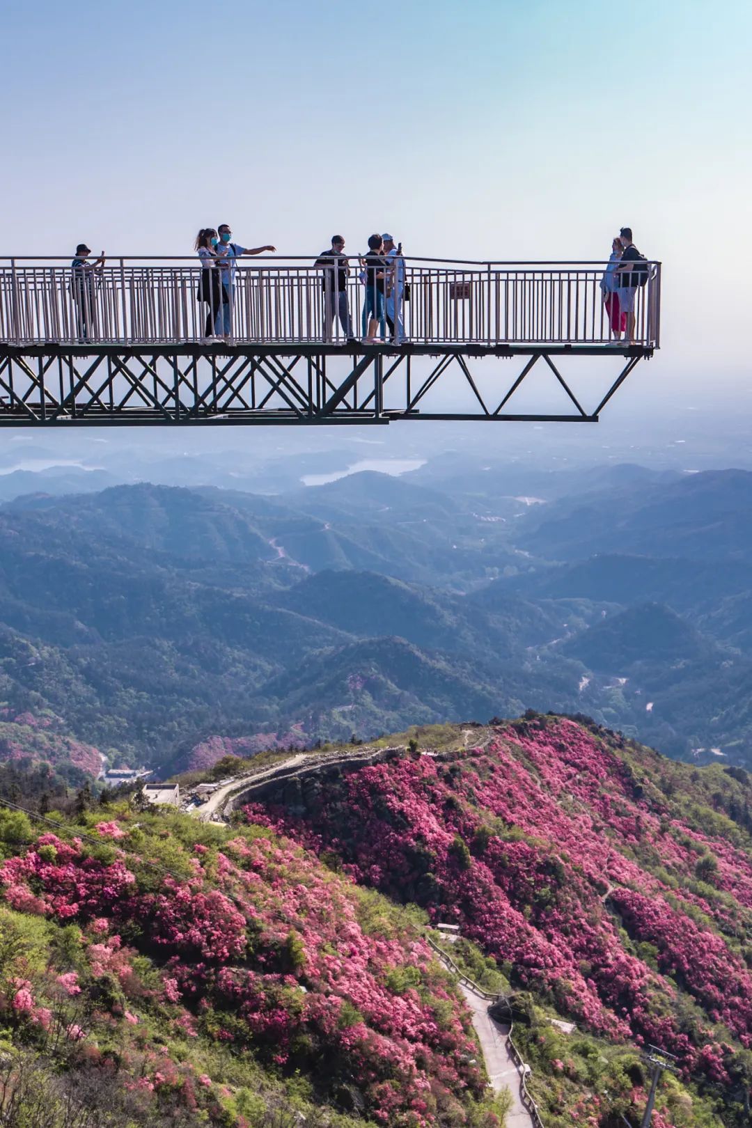 恐高慎入!向外懸挑81.9米的玻璃觀景臺一度打破吉尼斯世界紀(jì)錄,腳下是709米垂直深淵,萬畝杜鵑花海盡收眼前!敢不敢站上玻璃裂紋特效區(qū)?