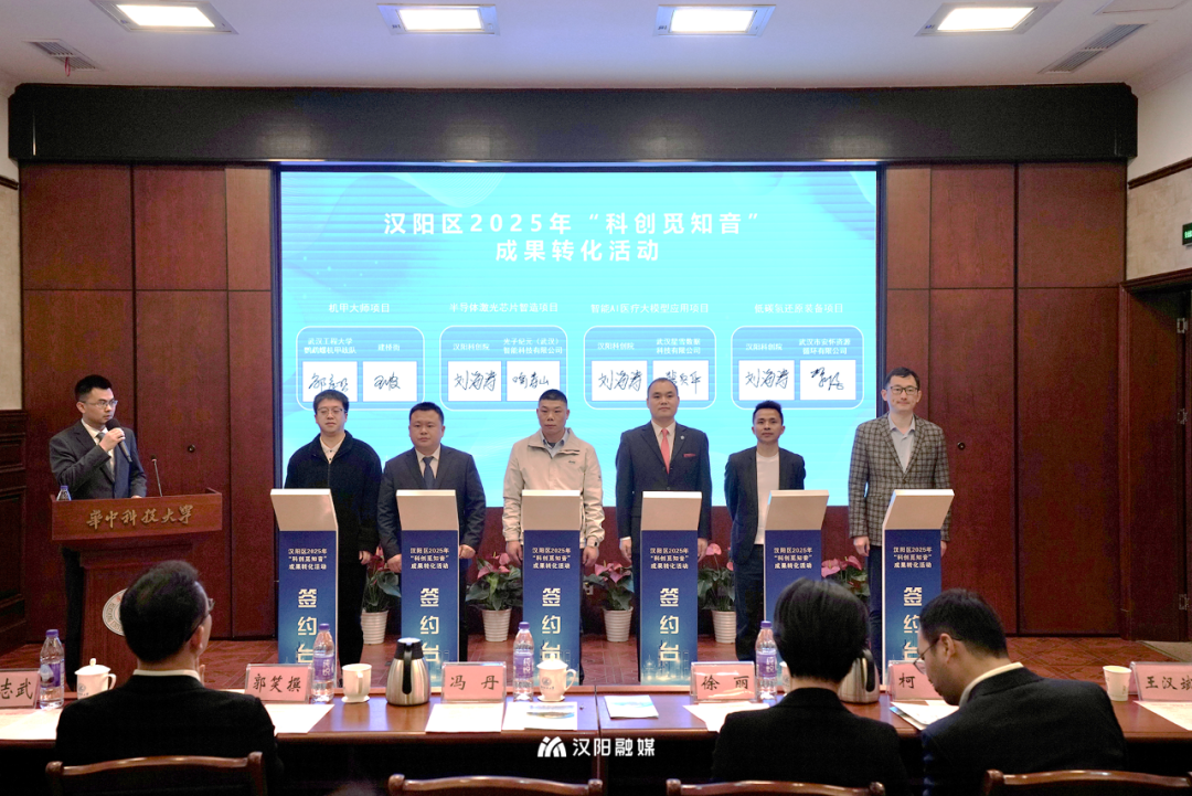 4月2日,漢陽區(qū)2025年“科創(chuàng)覓知音”成果轉(zhuǎn)化活動首次走進華中科技大學(xué),現(xiàn)場13個科創(chuàng)項目集中簽約,涵蓋人工智能、智能制造、綠色低碳等多個新興產(chǎn)業(yè)領(lǐng)域,其中約七成是從在漢高校飛出的科技成果轉(zhuǎn)化和創(chuàng)業(yè)項目,來自華中科技大學(xué)和武漢理工大學(xué)的3個機器人項目備受關(guān)注。