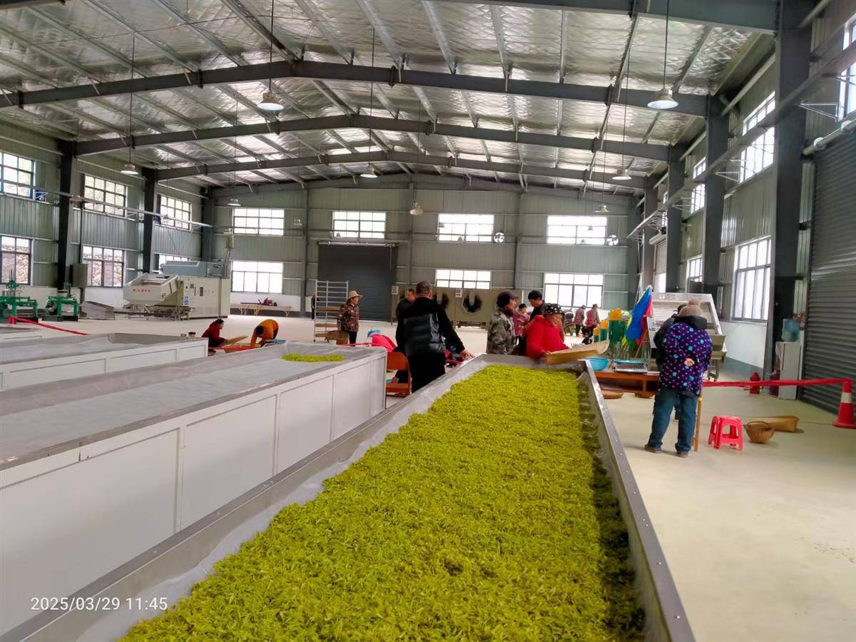 在1300平方米的現(xiàn)代化茶葉加工廠(chǎng)內(nèi),殺青機(jī)、烘干機(jī)正開(kāi)足馬力運(yùn)轉(zhuǎn)。今年是洋坪鎮(zhèn)品種黃茶規(guī)?;庸ふ{(diào)試生產(chǎn)的第2年,預(yù)計(jì)可生產(chǎn)干茶1000斤,產(chǎn)值近60萬(wàn)元。