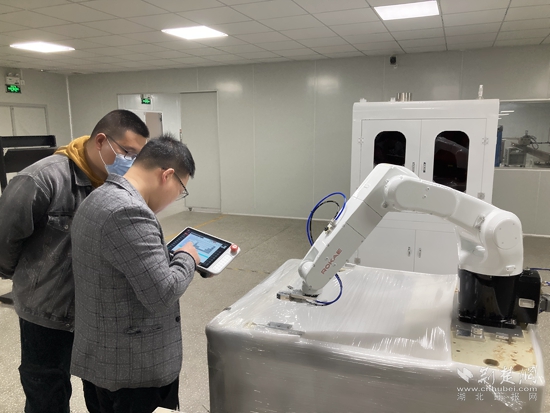 赤壁一制造業(yè)企業(yè)內,開發(fā)人員正調試設備。黃錚 攝