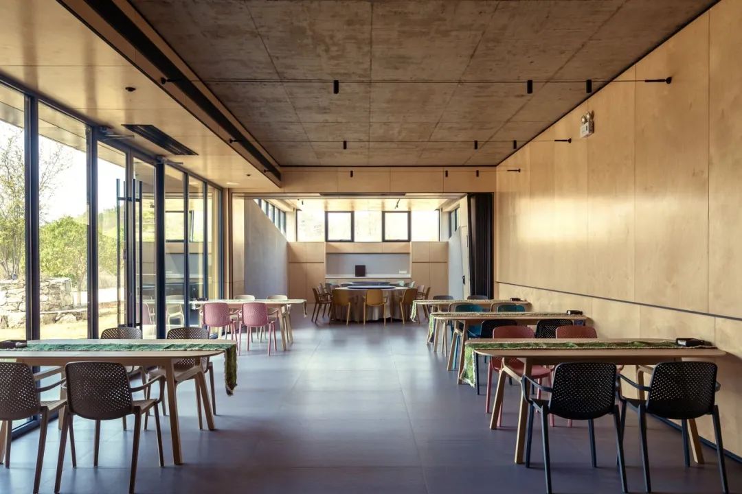山三與蛙四枕著砂石路面而眠,木紋墻面映照著光的指紋?;ㄎ搴婉妨俗屙?,落地玻璃將山松晨霧拓印裝裱。