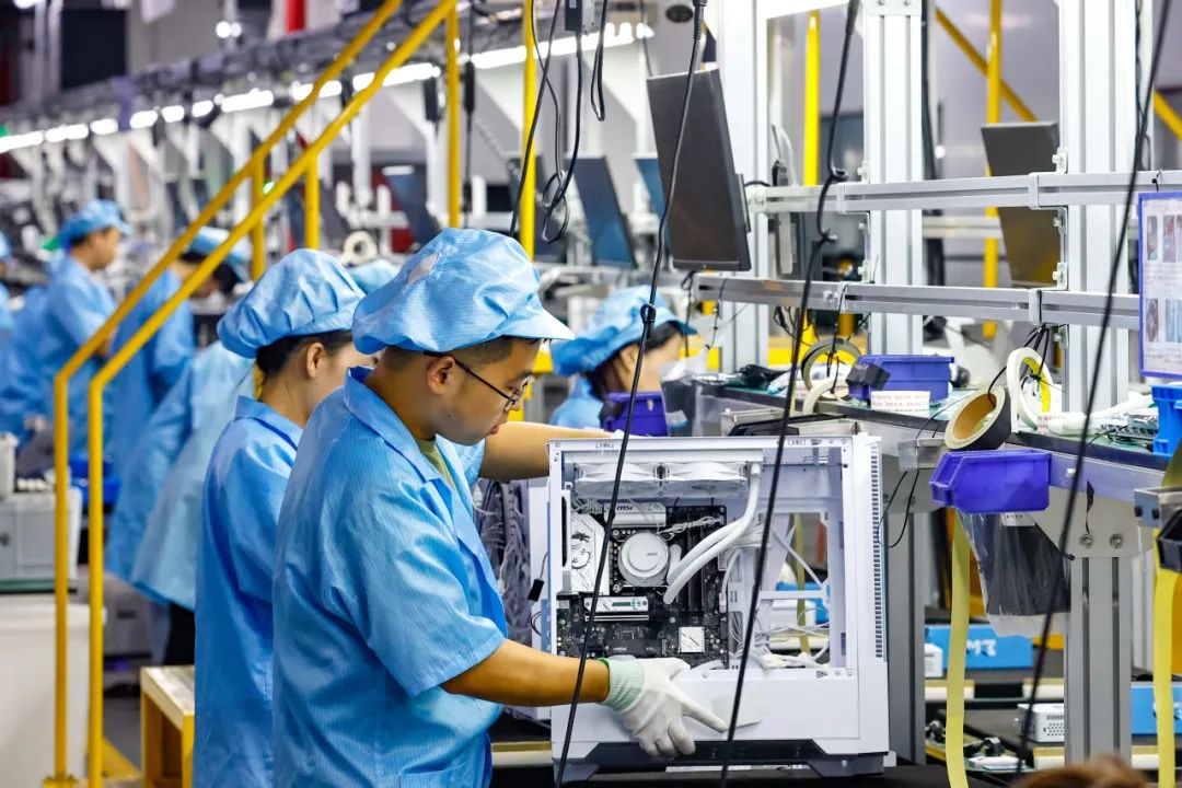 “星閃是新一代近距離無線連接技術(shù),傳輸速度和抗干擾性遠(yuǎn)超藍(lán)牙和Wi-Fi。”攀升科技主要負(fù)責(zé)人介紹,攀升科技實(shí)現(xiàn)柔性化生產(chǎn),讓生產(chǎn)線上每臺(tái)電腦都不一樣,顧客在網(wǎng)上下單,基本實(shí)現(xiàn)24小時(shí)內(nèi)發(fā)貨,完全滿足用戶大規(guī)模個(gè)性化定制。