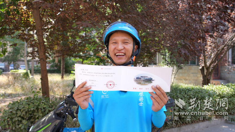 荊楚網(wǎng)(湖北日報網(wǎng))訊(通訊員 易曄)“很多人會覺得,39歲再去讀大學可能有點晚了,但對我來說,現(xiàn)在一切都剛剛好,我期待穿上學士服的那天?!?月21日,餓了么藍騎士馮天雷正準備結(jié)束一天跑單任務時,收到了一則包裹抵達提醒,是來自西南科技大學數(shù)字傳媒藝術專業(yè)的錄取通知書。
