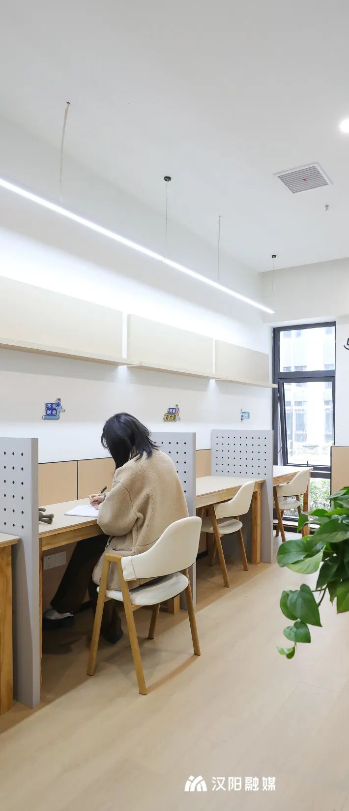 △公寓一樓,青年驛站、青年夜校、共享自習室內,年輕人樓上安家,樓下創(chuàng)業(yè)。