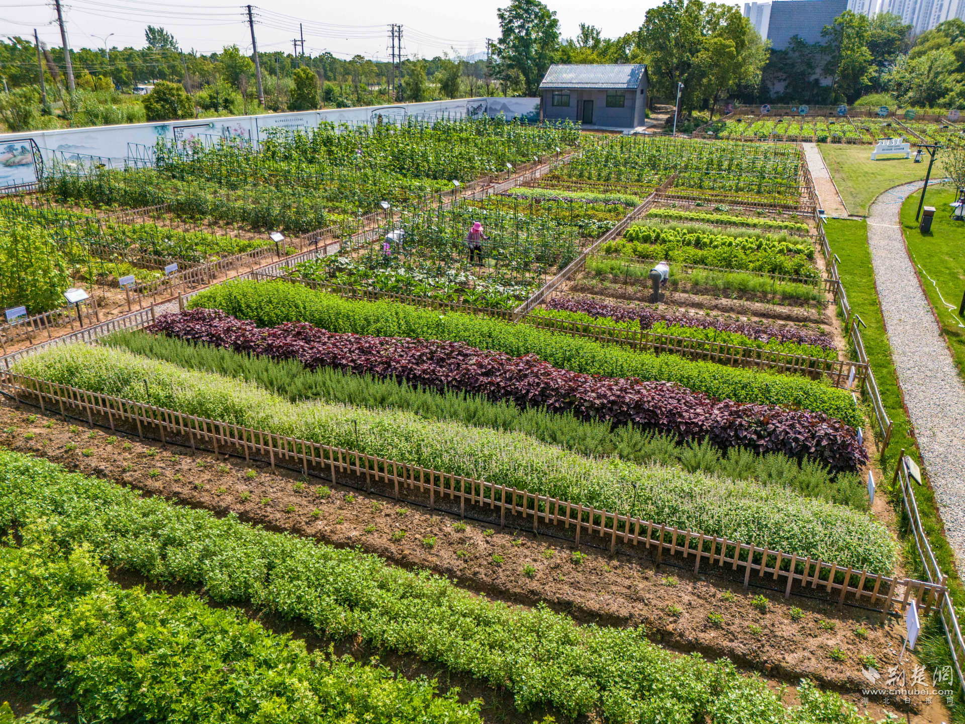 該區(qū)被譽(yù)為武漢市民的“菜籃子”“果盤子”,結(jié)合地域特點(diǎn),該區(qū)創(chuàng)新思路,結(jié)合當(dāng)?shù)赝寥?、氣候條件,將清理后的土地規(guī)劃為共享菜地。劃分規(guī)整的菜畦、縱橫交錯(cuò)的灌溉溝渠、統(tǒng)一搭建的標(biāo)識(shí)牌,讓這片曾經(jīng)的“臟亂差”區(qū)域煥發(fā)新生。