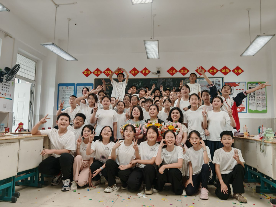 本來(lái)以為,我會(huì)站在原地看學(xué)生奔赴山海。沒(méi)想到,我也收到了超大的驚喜。離校前,家長(zhǎng)為班級(jí)組織了一場(chǎng)溫馨的活動(dòng),還播放了一段長(zhǎng)達(dá)6分鐘的“回憶殺”視頻,太令我感動(dòng)了!