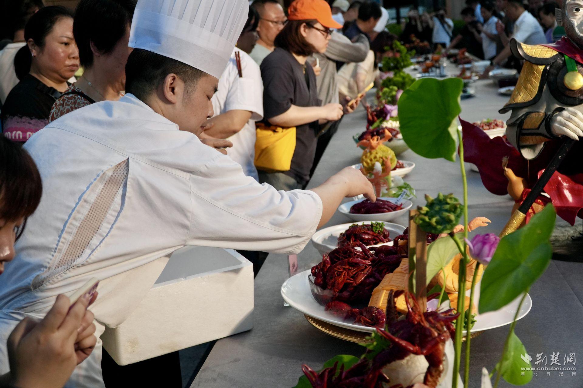 荊楚網(湖北日報網)訊(記者 何婧 實習生 陳靖南 通訊員 羅驗)雕刻小龍蝦模樣的菜肴已不足為奇,把小龍蝦做成“荔枝”才真的讓人眼前一亮。7月23日晚,“來漢口 逛江漢—江漢區(qū)小龍蝦烹飪技能大賽”精彩開賽。
