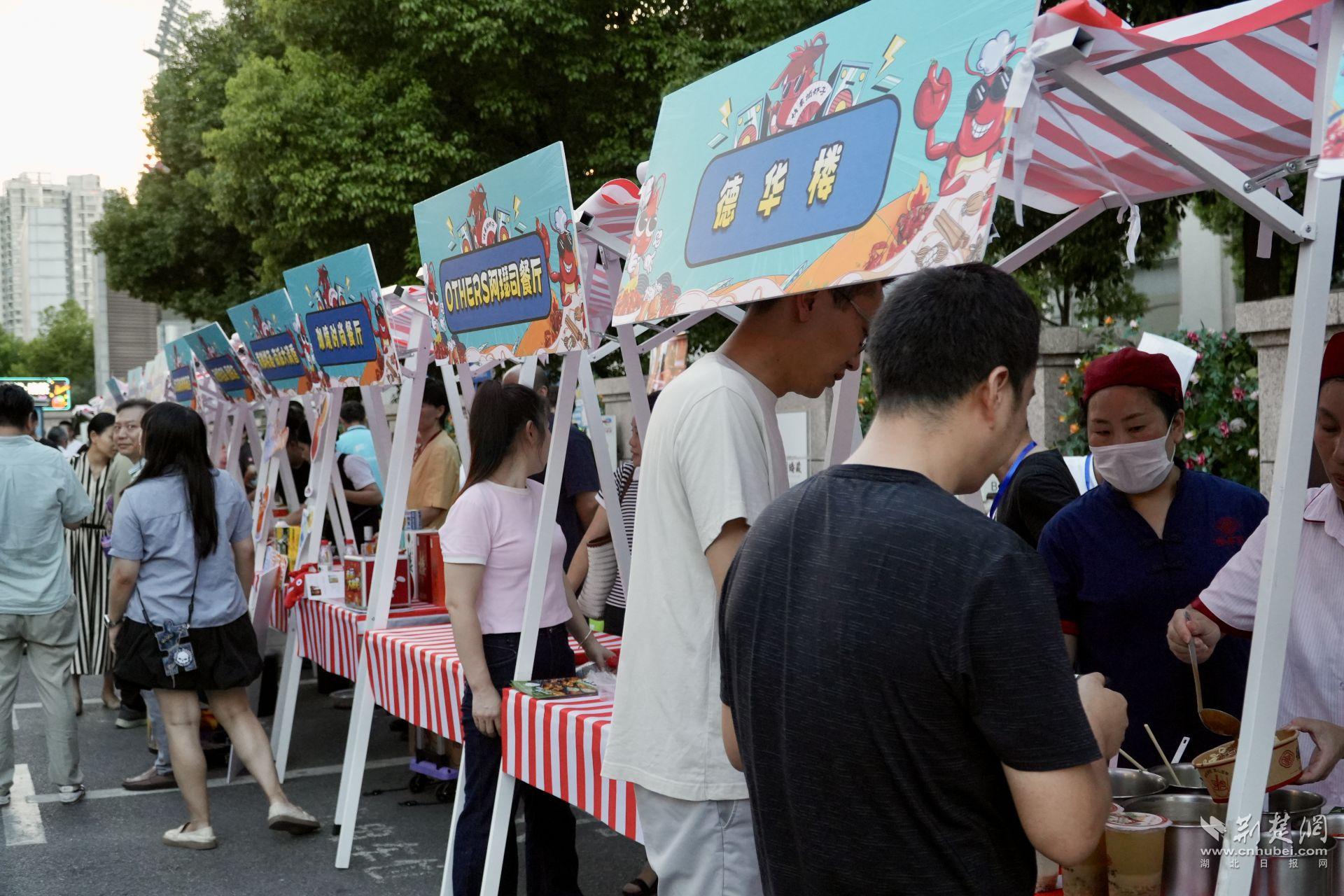 此次活動由中共江漢區(qū)委北湖街道工委、江漢區(qū)總工會聯(lián)合主辦,吸引了全區(qū)28家餐飲企業(yè)參賽,20多家本地品牌現(xiàn)場設攤。比賽、演出、逛展一應俱全,吸引了百余名居民圍觀互動,大家在熱騰騰的夜市氛圍中,不僅學了手藝、看了演出,也嘗到了地道的武漢美味。