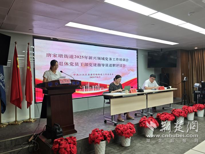 荊楚網(wǎng)(湖北日報網(wǎng))訊(記者 何婧 通訊員 袁蘊萁 顧蝶)8月5日下午,江漢區(qū)唐家墩街道召開2025年新興領(lǐng)域黨務(wù)工作專題培訓暨退休黨員干部黨建指導(dǎo)員述職評議會。來自街道黨建指導(dǎo)員、企業(yè)黨組織、社區(qū)黨委等50余名黨務(wù)骨干齊聚一堂,聚焦履職能力提升,推動“兩企三新”黨建提質(zhì)增效。