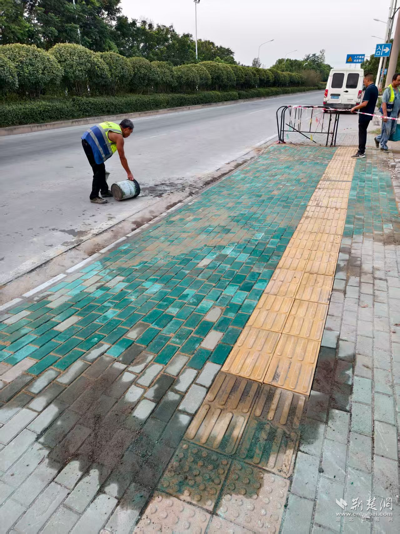 施工過程中,同樣嚴格把控每一道流程,確保磚塊貼合牢固,有效避免日后松動問題。同時,團隊還對區(qū)域內(nèi)的盲道等無障礙設施進行了全面排查與完善,全力為特殊人群出行提供安全保障。