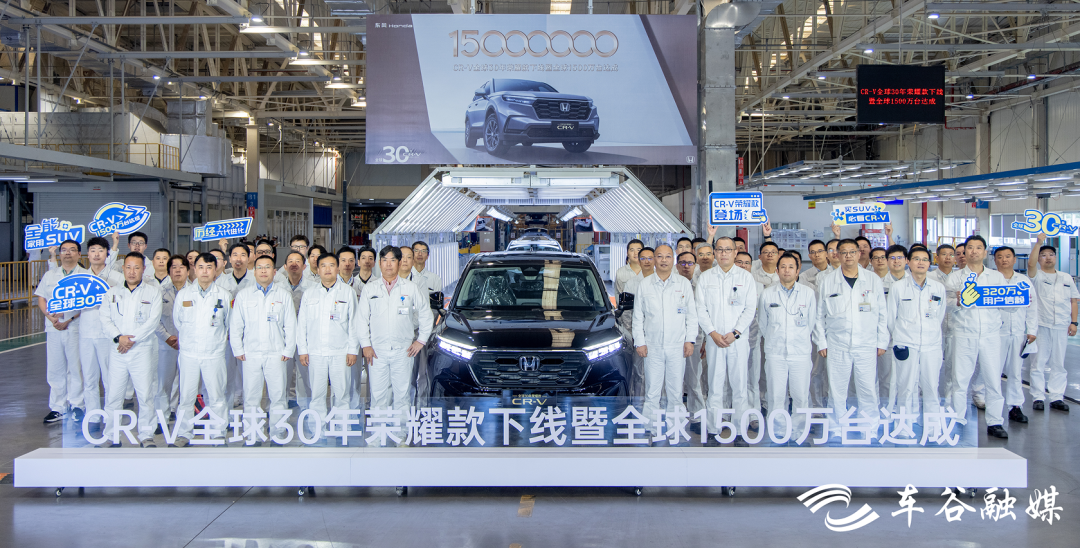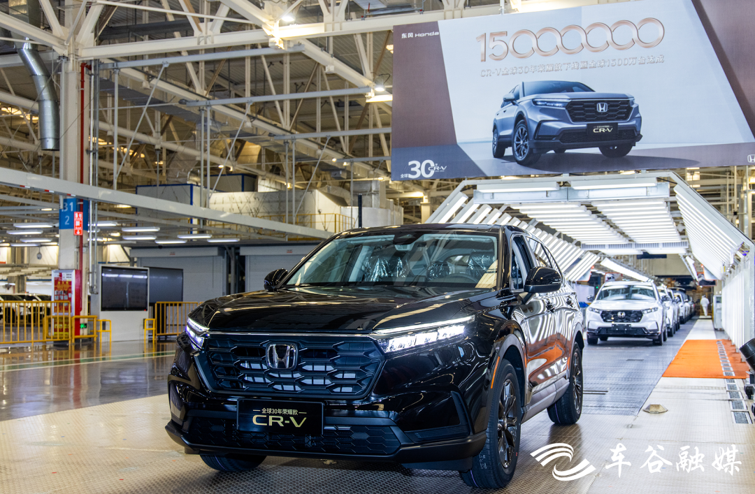 9月15日11時(shí)40許,在位于武漢經(jīng)開(kāi)區(qū)的東風(fēng)本田第三工廠(chǎng)總裝車(chē)間,一輛東風(fēng)本田CR-V全球30年榮耀款緩緩駛下生產(chǎn)線(xiàn)。同日,CR-V全球累計(jì)銷(xiāo)量突破1500萬(wàn)臺(tái),成為全球最受歡迎的家用SUV之一。
