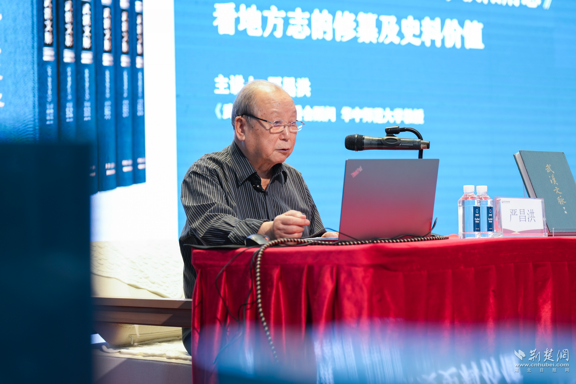 講座中,嚴(yán)昌洪教授圍繞《武漢文脈》“文獻(xiàn)編”與乾隆《漢陽府志》簡介、地方志的修纂、地方志的史料價(jià)值、整理出版舊志須注意的問題等四個方面展開闡述。他指出,《〔乾隆〕漢陽府志》詳細(xì)記載了清代乾隆年間漢陽府及其轄縣的歷史沿革與地理人文風(fēng)貌,其首創(chuàng)的“天官卷”體例尤為獨(dú)特,系統(tǒng)地輯錄天文歷法內(nèi)容,具有較高的史料稀缺性。