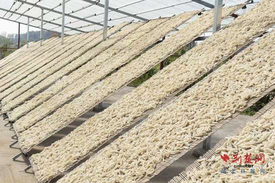 而這樣的環(huán)境催生了“豆絲”這一鄂州傳統(tǒng)美食。除了大米外,綠豆、黃豆、葛根等“豆絲”原材料生長在山溝、溪邊、林中?!懊磕耆攵?,幾乎家家起大灶開始制作豆絲,風(fēng)干后可以留存整個冬天?!敝軛罱榻B。