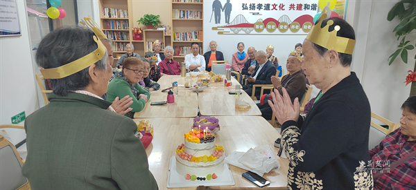 伴隨著溫馨的生日歌,工作人員推出精美的生日蛋糕。壽星們閉目許愿、吹滅蠟燭,接受全場(chǎng)真摯的祝福。老人們一邊品嘗蛋糕,一邊閑話家常,臉上洋溢著幸福的笑容。