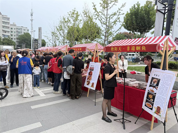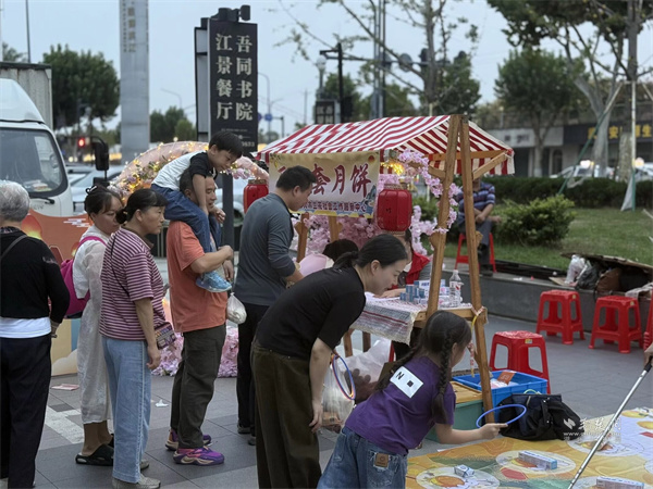 活動(dòng)現(xiàn)場(chǎng)設(shè)置市集區(qū)與演藝區(qū)兩大板塊。市集區(qū)內(nèi)人頭攢動(dòng),轄區(qū)共建單位、音樂企業(yè)與多家商戶積極參與,匯聚特色商品與音樂互動(dòng)體驗(yàn)。大音琴行展出多種樂器并銷售音樂周邊產(chǎn)品,吸引眾多武漢音樂學(xué)院學(xué)生及音樂愛好者駐足交流;元祖食品推出月餅、點(diǎn)心等節(jié)令糕點(diǎn)展銷,為中秋佳節(jié)提前預(yù)熱;艷陽天·非遺鮰魚(黃鶴樓店)、中百倉儲(chǔ)、九州上醫(yī)館及多家大成路特色美食商戶也紛紛設(shè)點(diǎn),讓市民在觀賞演出之余,盡享購物與美食樂趣。