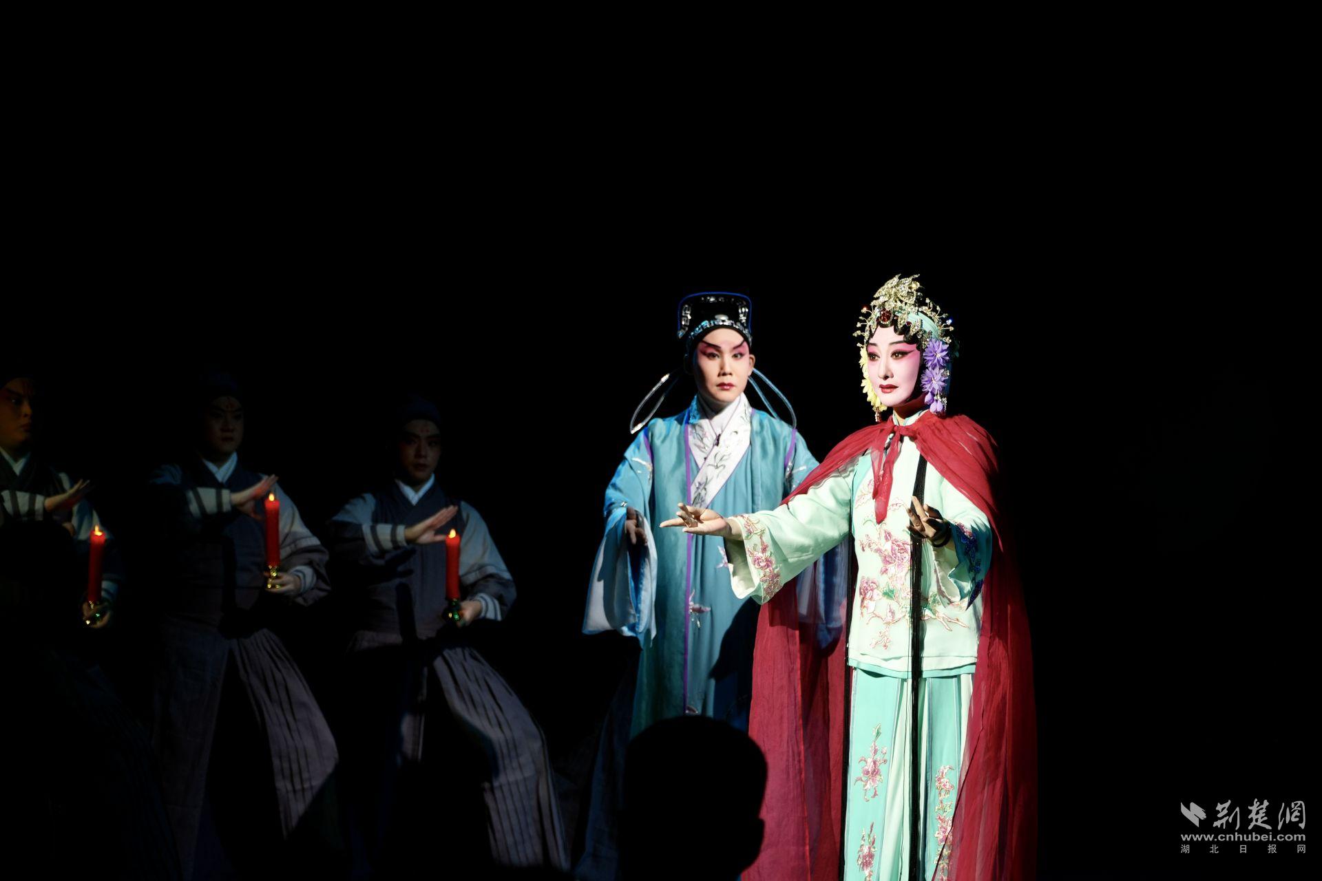 隨后,小劇場(chǎng)純享版京劇《命定·烏龍?jiān)骸肪书_(kāi)演。茶座式觀演模式讓觀眾一邊欣賞唱念做打的絕活,一邊品味武漢老字號(hào)糕點(diǎn)。傳統(tǒng)藝術(shù)與地道風(fēng)味交織,帶來(lái)別具一格的沉浸體驗(yàn)。