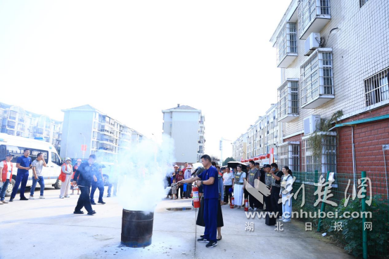 廣場一側(cè),先由湘口街道專職消防隊帶來一場沉浸式防災(zāi)減災(zāi)知識課。消防隊員就滅火器的性能、用途、使用方法、設(shè)備維護等基本知識進行講解,對如何正確使用消防栓、鋪設(shè)水帶進行了展示,著重講解了滅火器“一搖、二對、三撥、四壓”的操作技巧和注意事項,并指導(dǎo)社區(qū)居民進行滅火器實操演練。“以前覺得滅火器操作很難,掌握技巧一點不難!”參加實操的居民李大爺說道。