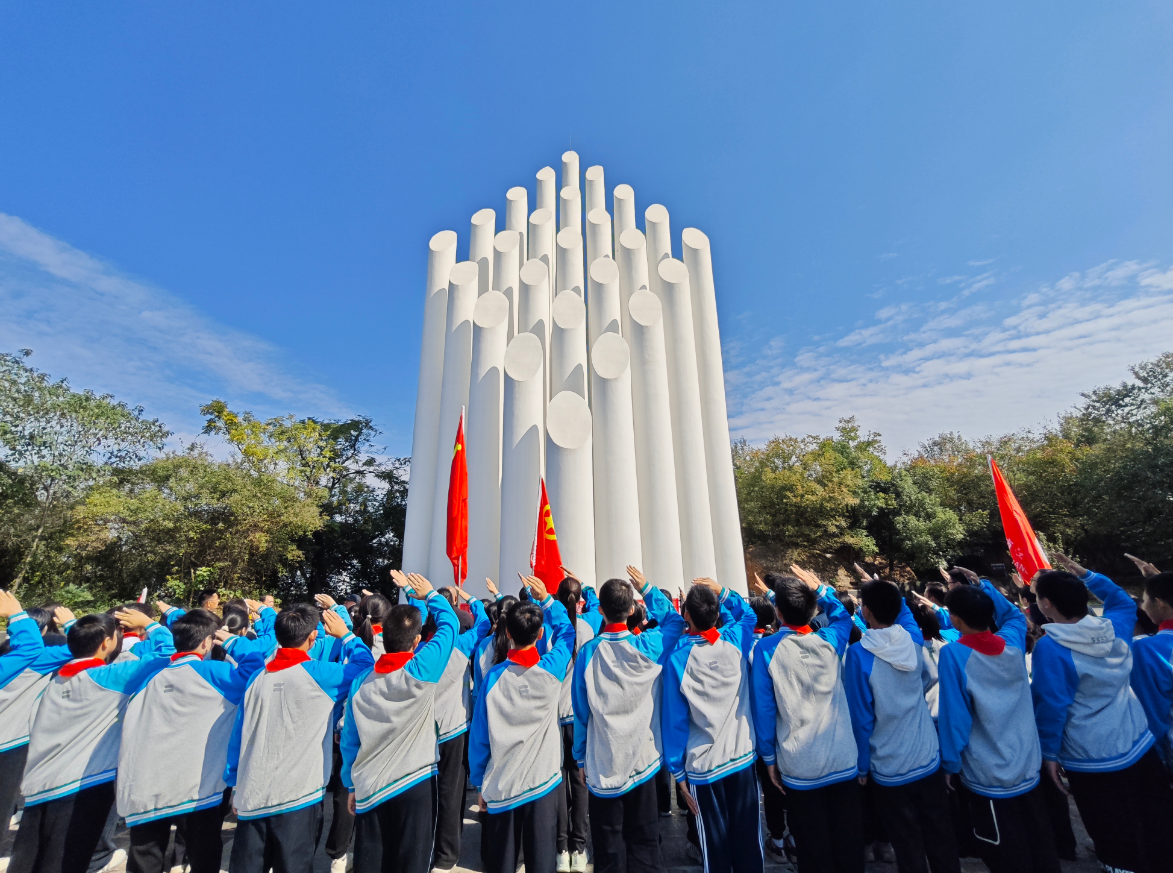 10時(shí),緬懷先烈儀式在中山艦陣亡將士紀(jì)念碑前莊重舉行。全體人員肅立,高唱中華人民共和國(guó)國(guó)歌,歌聲結(jié)束后,現(xiàn)場(chǎng)靜立一分鐘默哀,深切追思25位為國(guó)捐軀的海軍將士。隨后,黨員代表與江夏四中代表共同上前,向紀(jì)念碑敬獻(xiàn)花籃并細(xì)致整理緞帶,表達(dá)對(duì)英烈的崇敬與追思之情。儀式最后,學(xué)生代表領(lǐng)誓,全體人員高舉右拳宣讀誓詞,“銘記歷史、緬懷先烈、復(fù)興路上、強(qiáng)國(guó)有我”的誓言鏗鏘有力,不僅是對(duì)革命先烈的莊嚴(yán)承諾,更彰顯了館校雙方以紅色教育培育時(shí)代新人的共同決心。
