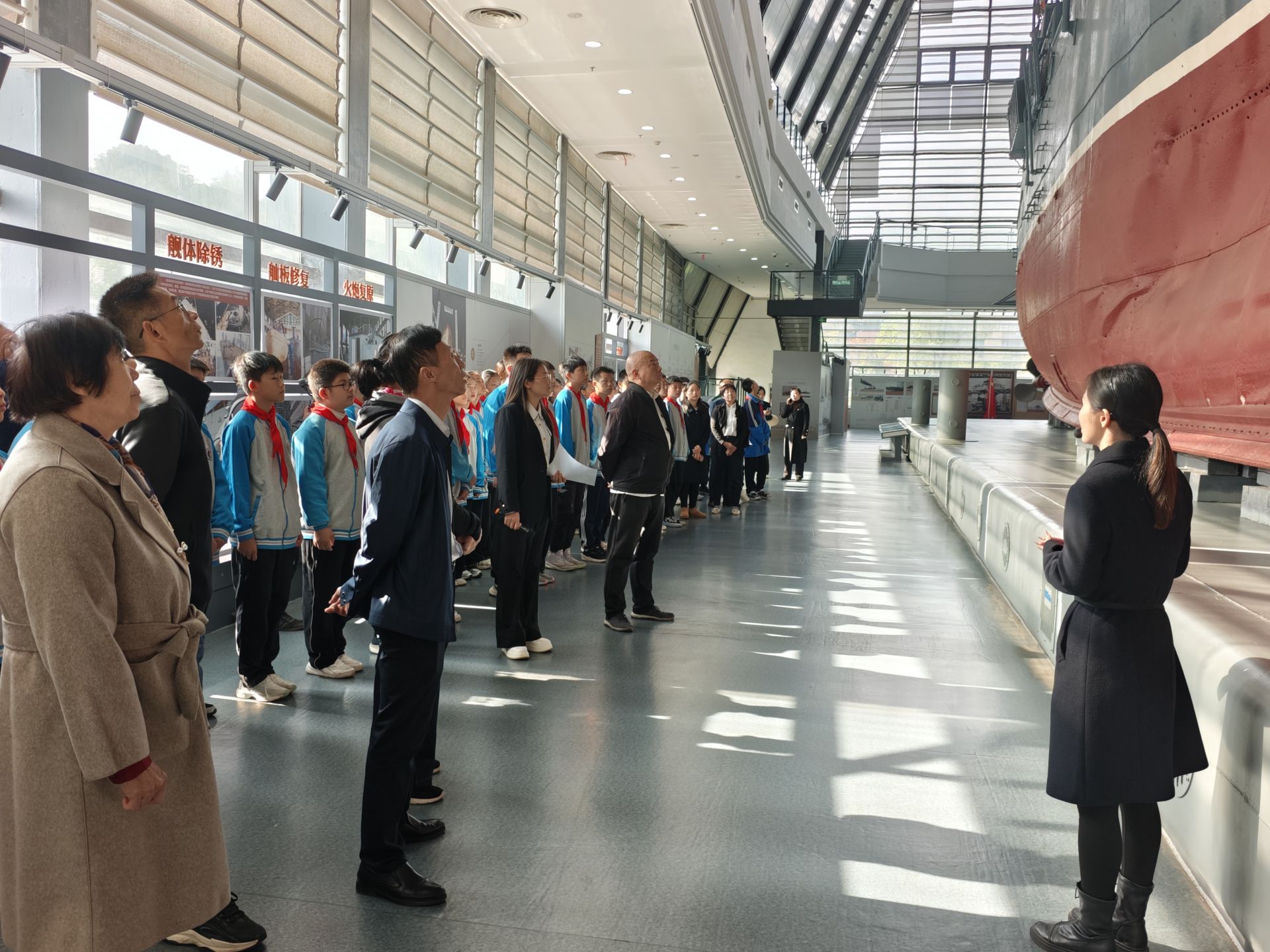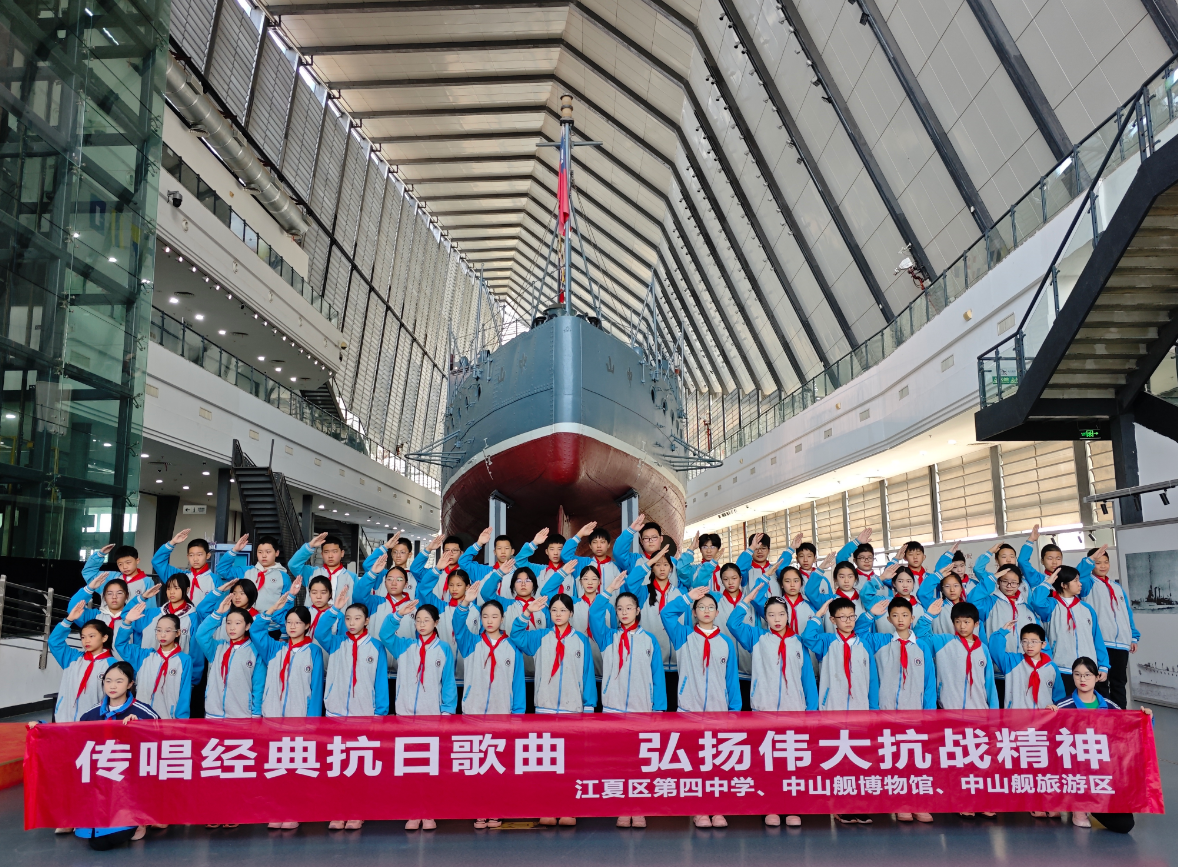 活動(dòng)于上午8時(shí)30分在中山艦艦體前正式啟幕。中山艦旅游區(qū)管理處講解員以艦體尾部“中山”二字的歷史淵源為切入點(diǎn),講述中山艦從訂購(gòu)到參與抗戰(zhàn)的全歷程,專業(yè)解讀中融入文物背后的英雄故事;緊接著全體人員齊聲合唱《保衛(wèi)大武漢》《保衛(wèi)黃河》兩首抗戰(zhàn)經(jīng)典歌曲,伴隨著激昂的旋律,戰(zhàn)火紛飛的年代仿佛就在眼前,八十七年前中山艦官兵在武漢會(huì)戰(zhàn)中浴血奮戰(zhàn)的壯烈場(chǎng)景重現(xiàn)腦海。