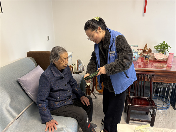為高齡老人發(fā)放智能分裝藥盒。 通訊員供圖