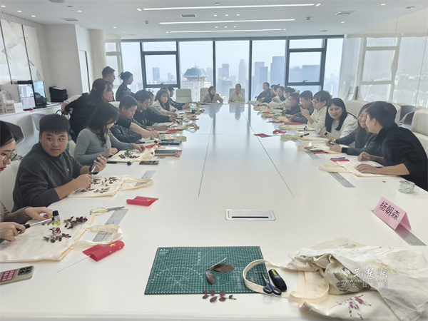 宣講結(jié)束后,現(xiàn)場(chǎng)還組織了“植物拓印”非遺體驗(yàn)環(huán)節(jié)。在武漢啟晨社會(huì)組織的指導(dǎo)下,黨員們以純天然植物為材料,制作了出了各具特色的環(huán)保袋。大家紛紛表示,在動(dòng)手創(chuàng)造美的過(guò)程中,切身感受到了綠色低碳生活的魅力,增強(qiáng)了踐行環(huán)保理念的自覺(jué)。