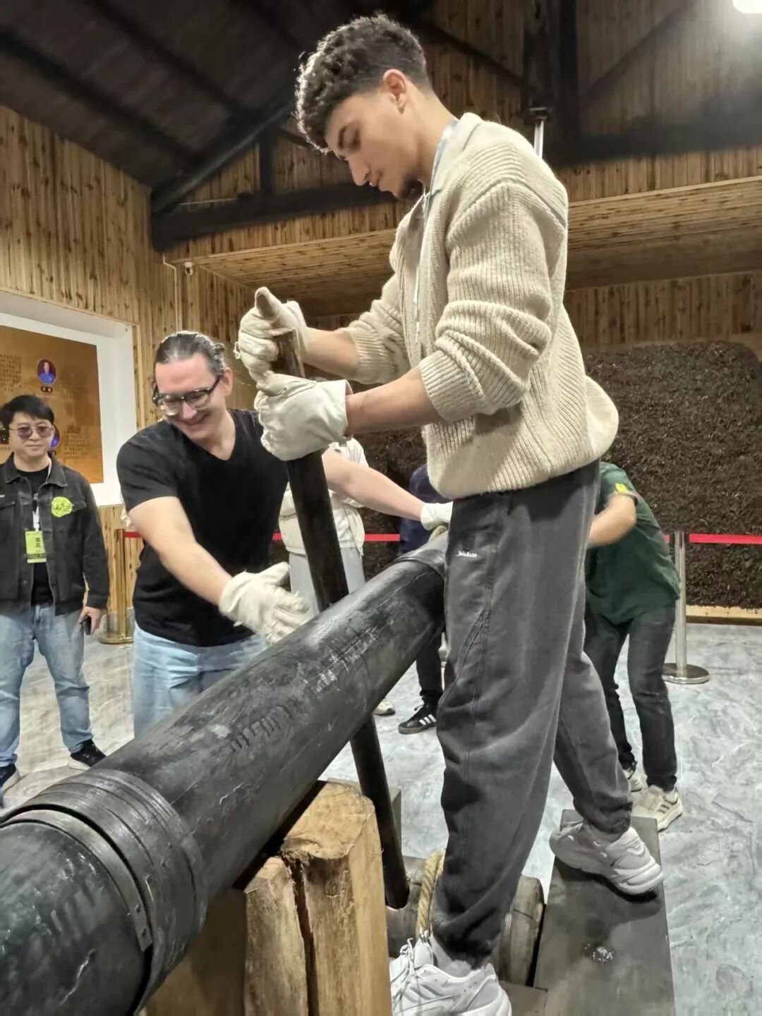 “我發(fā)現(xiàn)這是中俄友好的最好案例之一?!眮碜远砹_斯的武漢大學(xué)法學(xué)院博士生拉福在參觀后感慨道。他之前曾在杭州的博物館零星了解過中俄茶葉貿(mào)易,但此次來到中國青磚茶發(fā)源地,親手制作,感受尤為深刻?!拔覀冊诓┪镳^看到了一些工具,也親手體驗到茶是怎么做出來的,能感同身受體會當(dāng)年工人們的辛苦,真的需要費很多功夫才能制出好茶?!?/p>