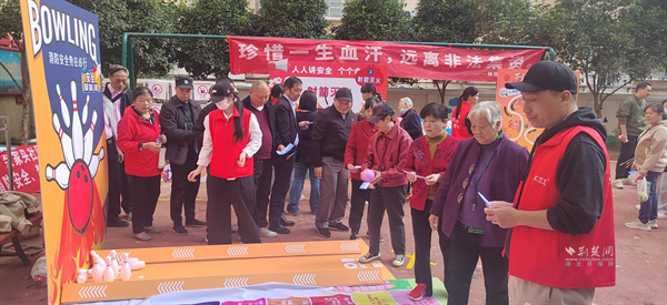 “烈焰突圍”區(qū)模擬火災(zāi)逃生場(chǎng)景,居民在游戲過(guò)程中逐步學(xué)習(xí)疏散避險(xiǎn)技巧;“反詐套圈”前,通過(guò)回答反詐相關(guān)問(wèn)題贏取套圈機(jī)會(huì),在歡樂(lè)的氛圍中將反詐要點(diǎn)牢記于心;“射箭滅火”“安全保齡球”等項(xiàng)目則讓居民在趣味互動(dòng)中,掌握初期火災(zāi)撲救知識(shí)、識(shí)別日常安全隱患;“安全知識(shí)互動(dòng)棋”以棋盤為媒,讓居民在每一步落子答題中,將安全常識(shí)內(nèi)化于心。